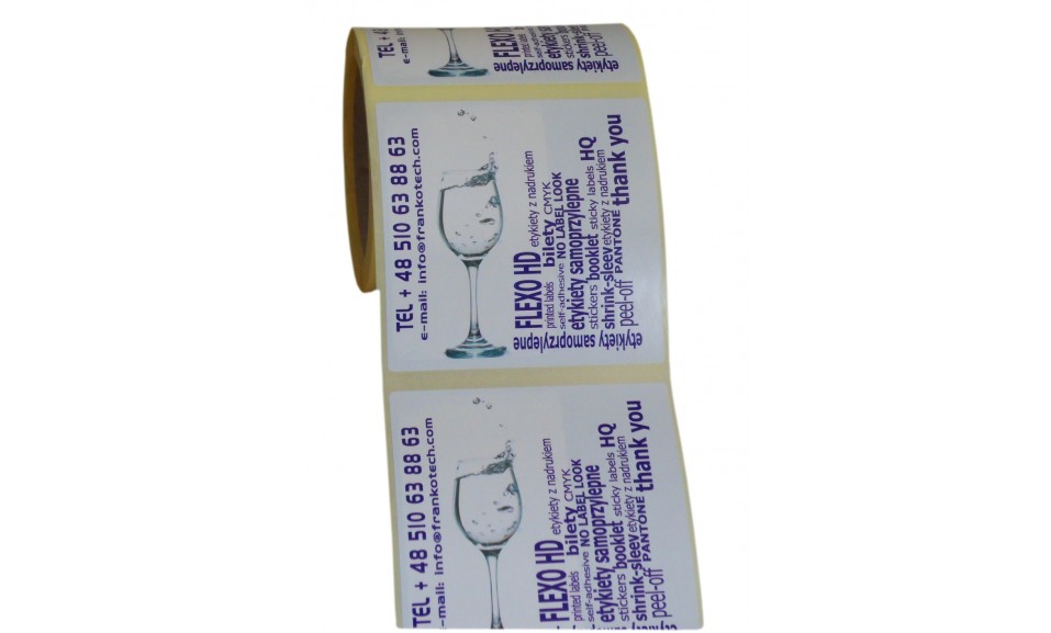 Etykieta z nadrukiem, papier 100 x 100 mm, cała lakierowana.