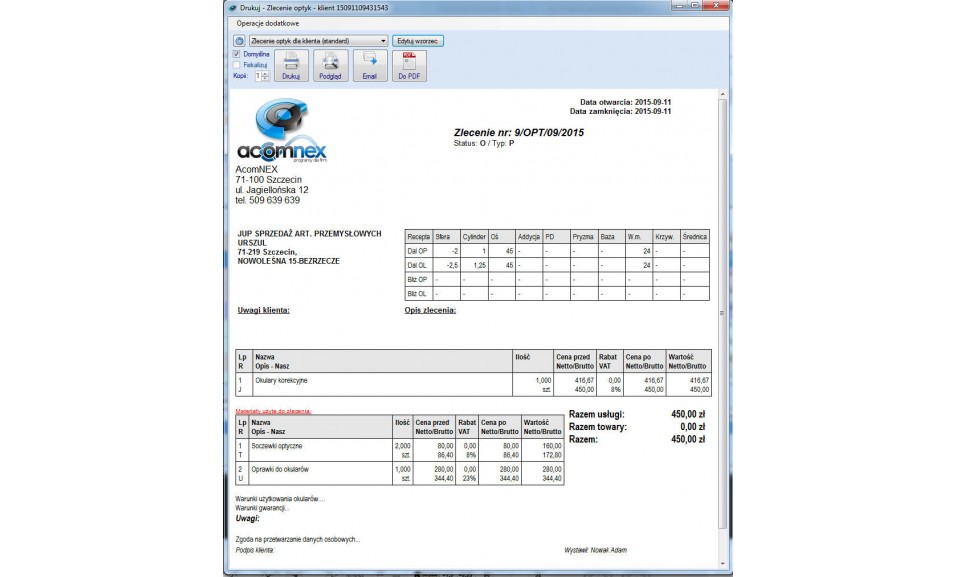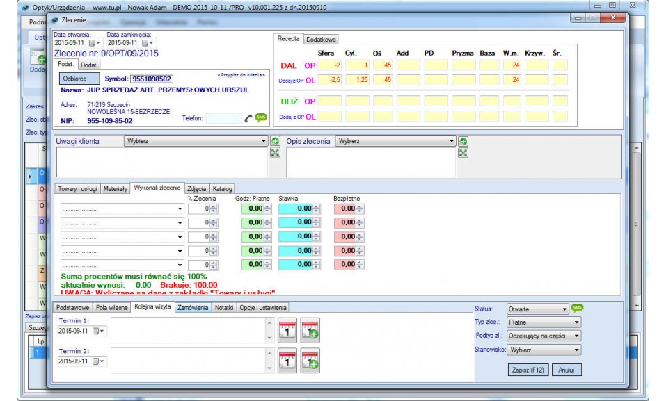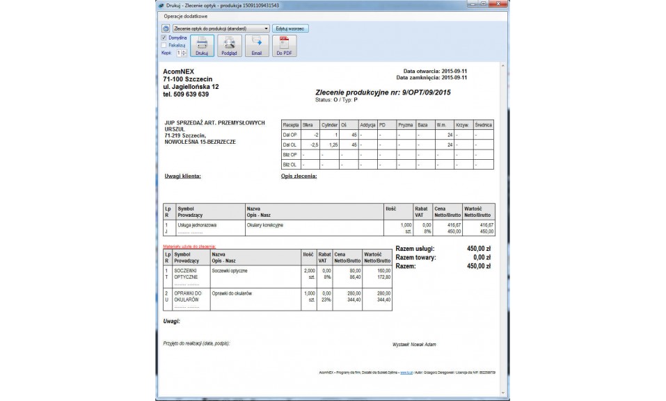 Optyk PRO to w pełni niezależny, rozbudowany system zarządzania zakładem optycznym zapewniający niezbędną funkcjonalność do obsługi salonu. Dzięki zastosowaniu profesjonalnego silnika baz danych program do optyka idealnie wpasuje się w mały jednooddziałowy salon jak i w dużą sieć salonów. W wyniku zastosowania nowego interfejsu, oprogramowanie optyczne jest niezwykle intuicyjny, co przekłada się na większą efektywność pracy.